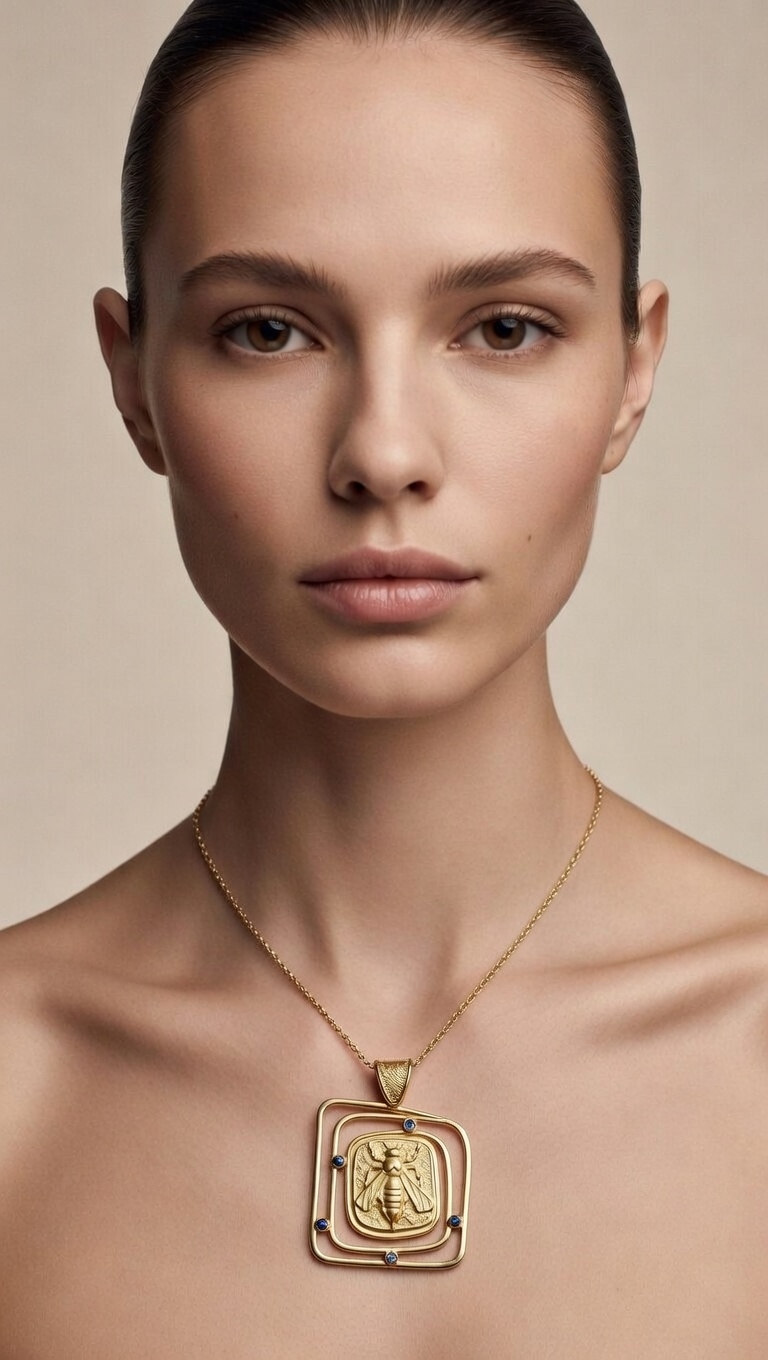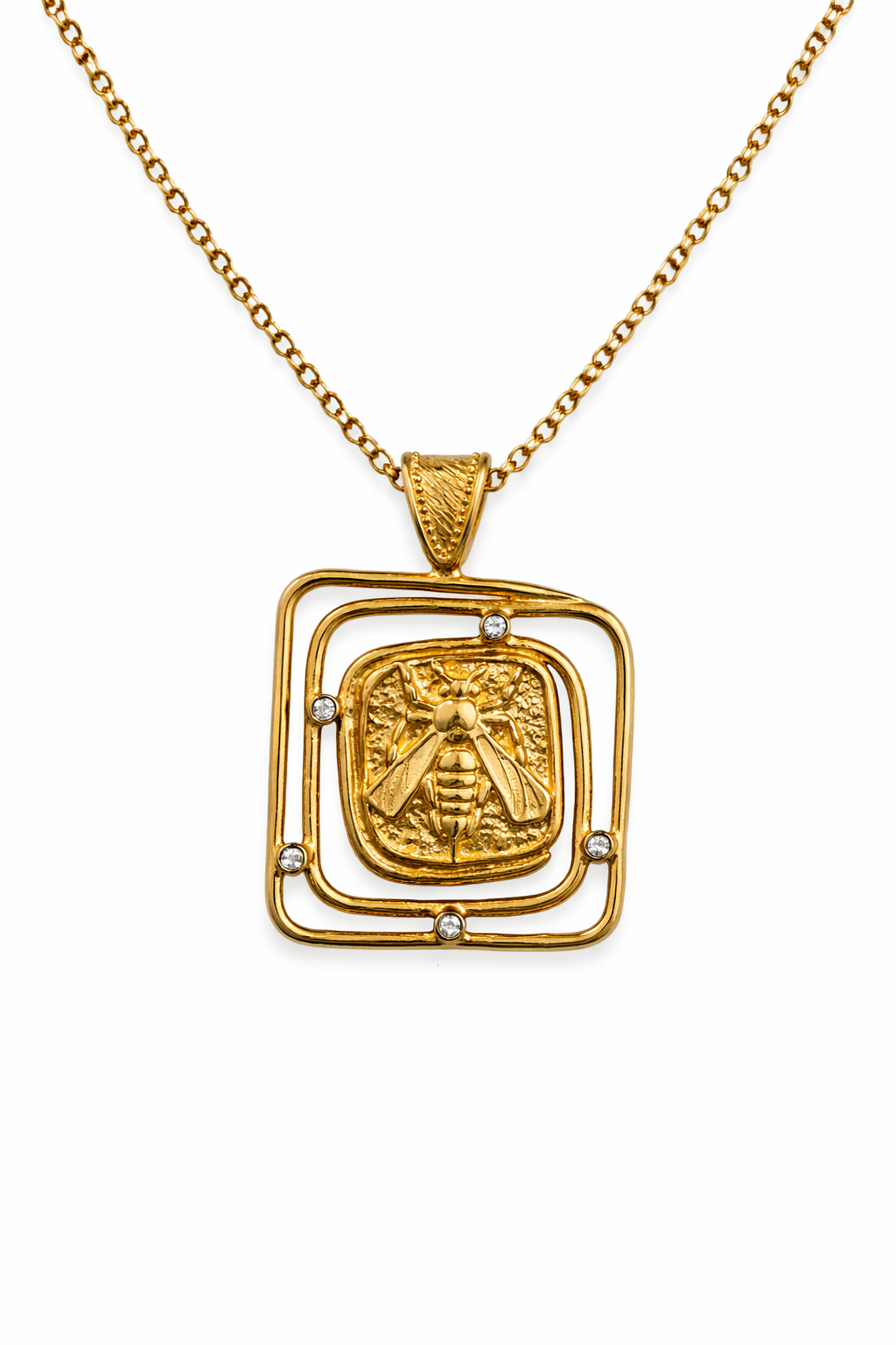 Bee Relief Square Frame Pendant Necklace